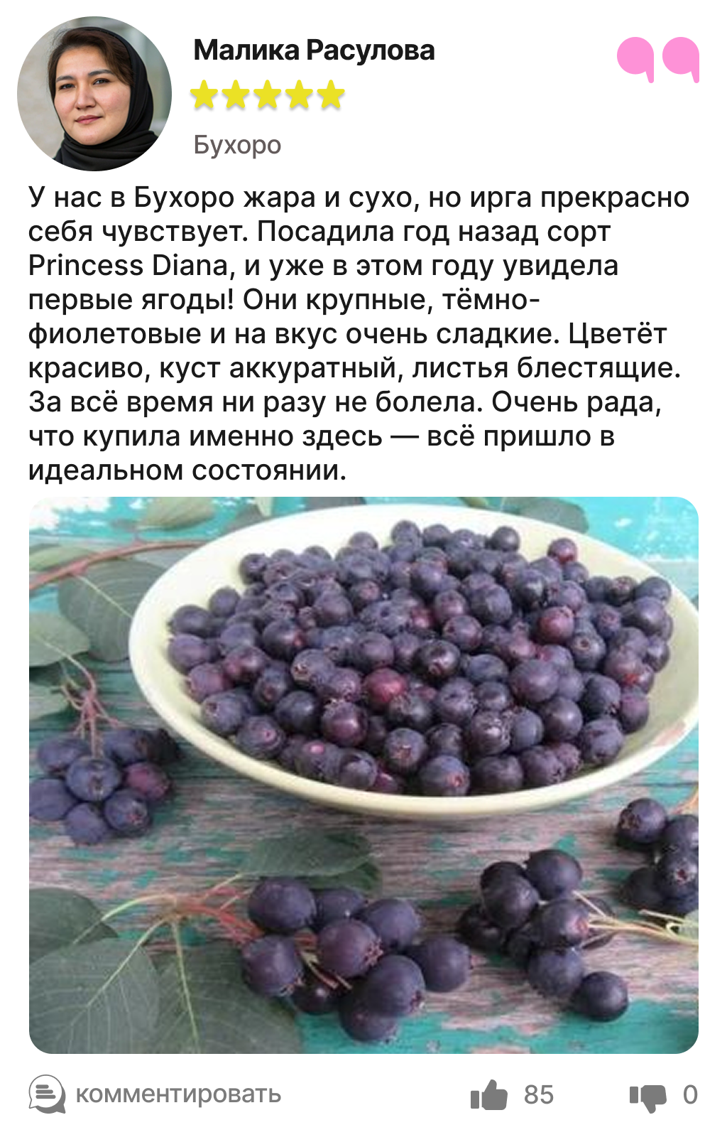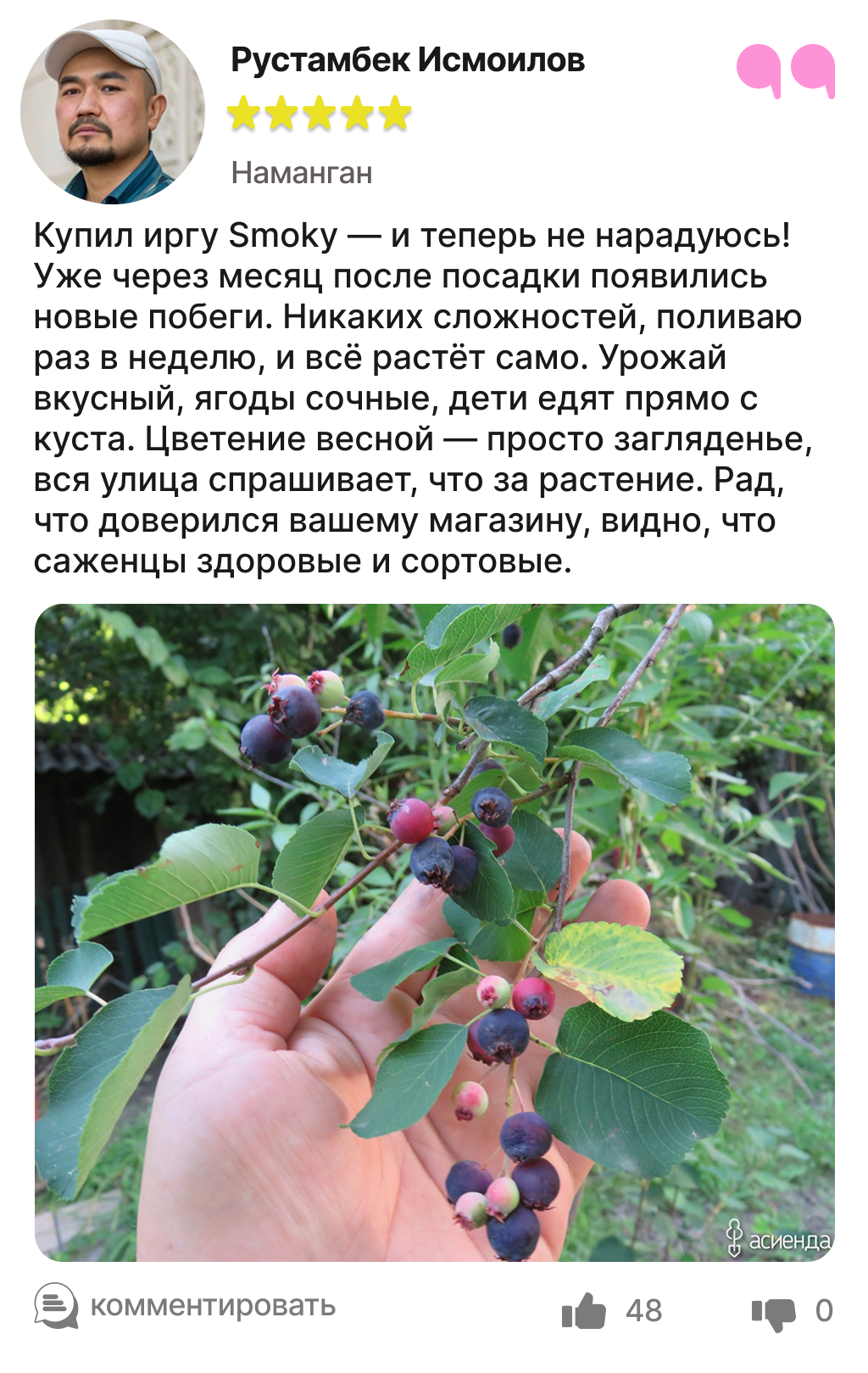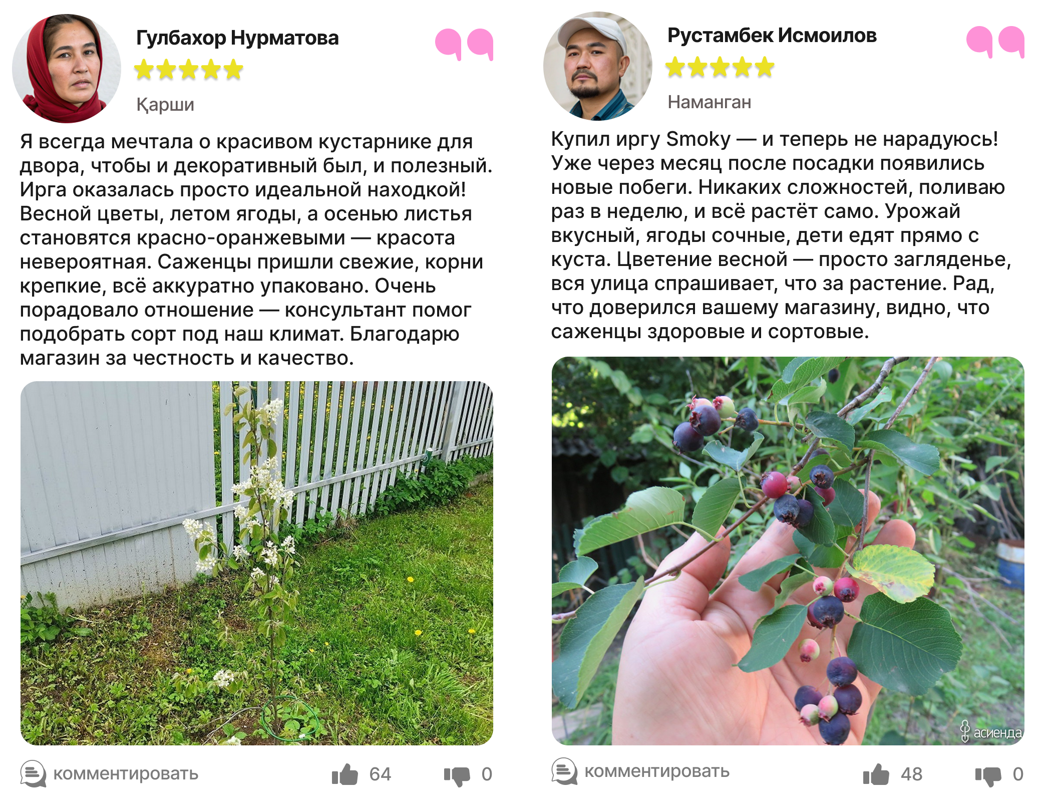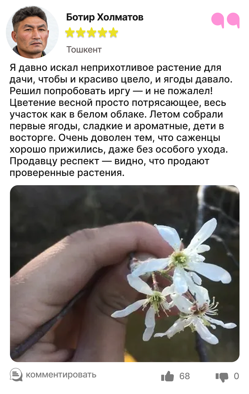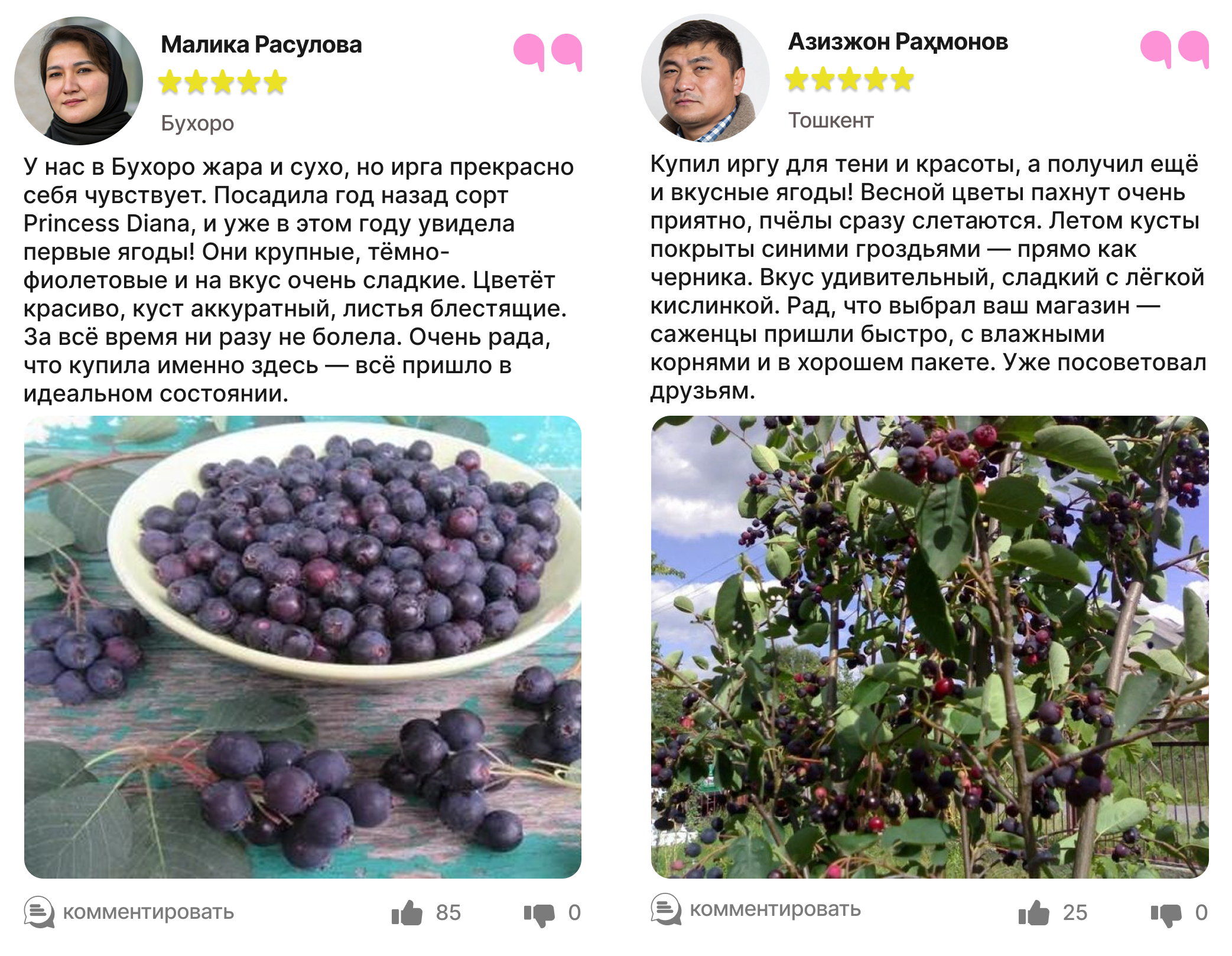 Каждый отзыв — это реальный опыт людей, которые уже посадили и выращивают иргу в своём саду.